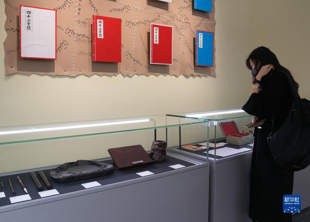 10月28日,觀(guān)眾在參觀(guān)金庸的文房四寶等展品。