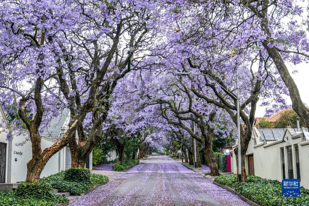 這是10月24日在南非約翰內斯堡拍攝的盛開(kāi)的藍花楹。