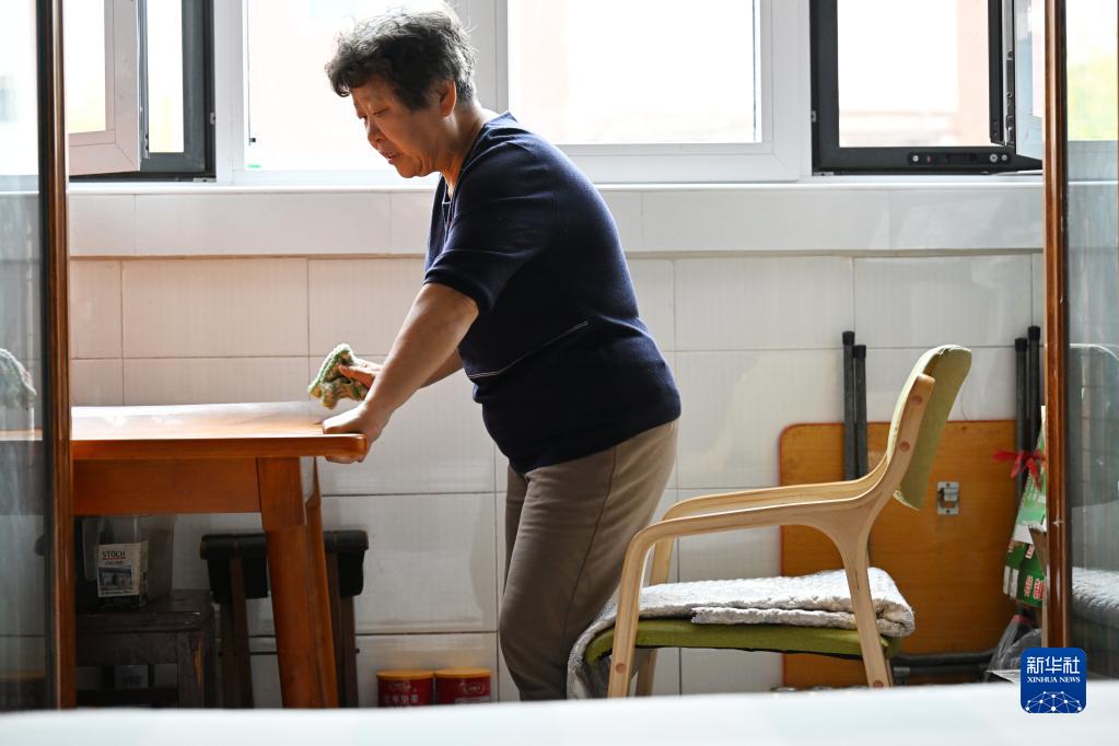 在天津市和平區文化村社區一居民家中,新添置的適老化桌椅設計有握手孔位,便于老人借力(10月27日攝)。