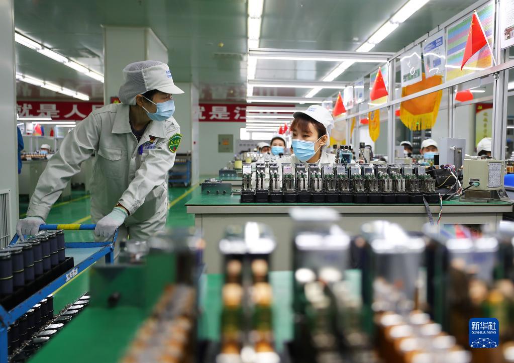 10月31日,柯曉賓(左一)在沈陽(yáng)鐵路信號有限責任公司電器中心車(chē)間分發(fā)繼電器。