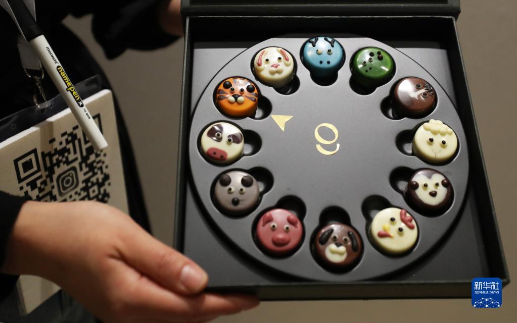 10月31日,甜點(diǎn)師在法國巴黎巧克力沙龍上展示巧克力。