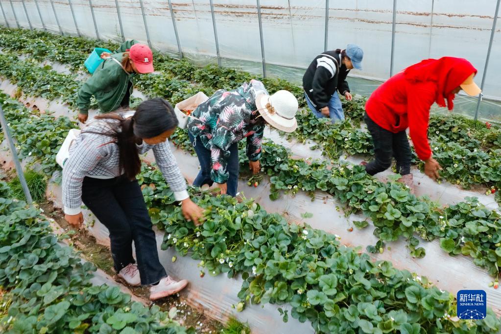 10月27日,在位于四川省涼山州昭覺(jué)縣三岔河鎮的九如草莓產(chǎn)業(yè)園,易地扶貧搬遷到此的居民在大棚里采摘草莓,他們每月可獲得1000至2000元收入。