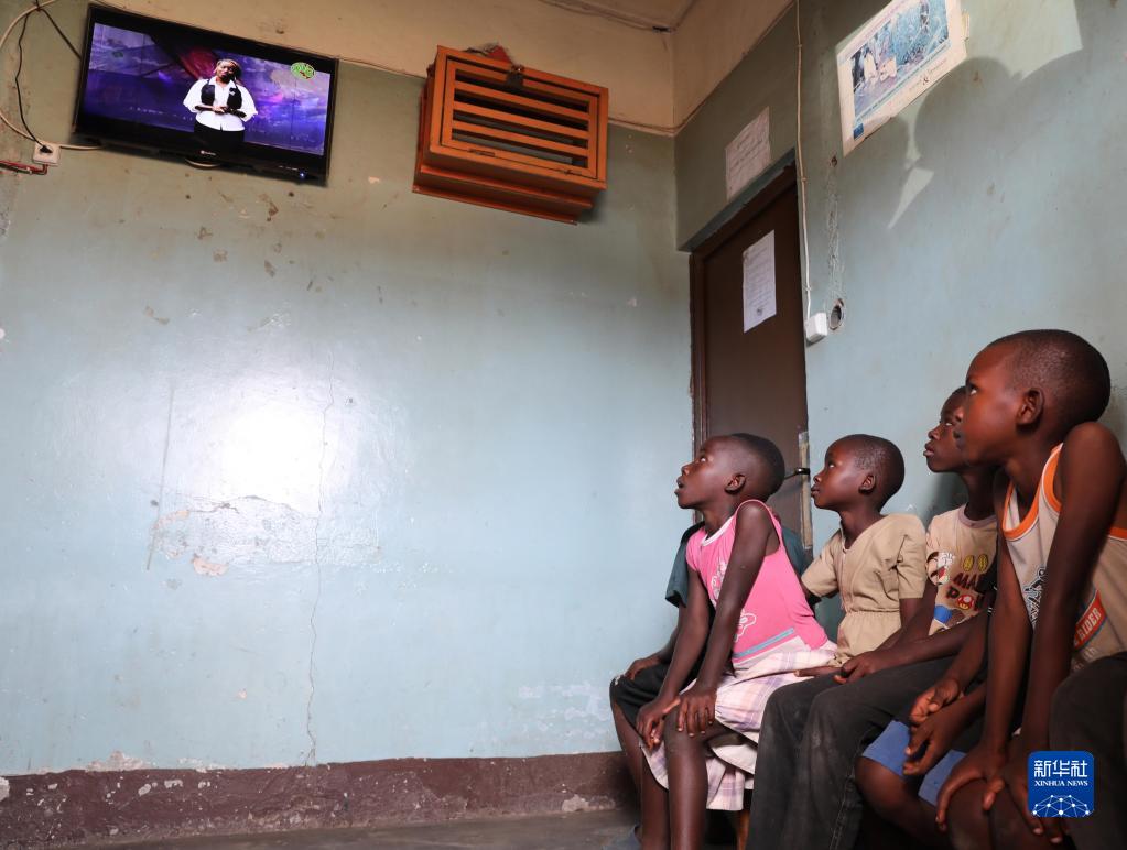 10月31日,在布隆迪布瓊布拉鄉村省穆蒂姆布齊一村莊,孩子們觀(guān)看衛星電視節目。