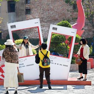 11月1日,青島市市南區銀魚(yú)巷,游客在一處改造后的老建筑內參觀(guān)。