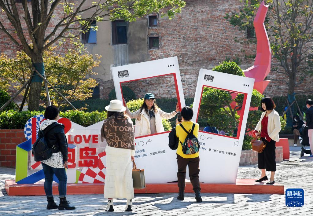 游客在青島市市北區大鮑島街區參觀(guān)(10月19日攝)。