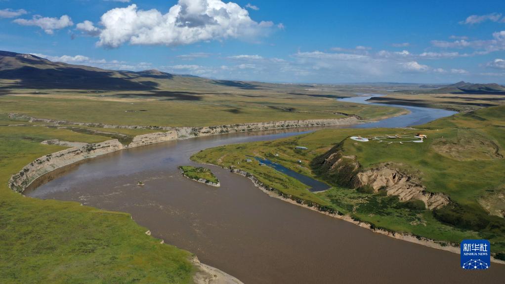 黃河流經(jīng)甘肅省甘南藏族自治州瑪曲縣境內(2022年9月21日攝,無(wú)人機照片)。