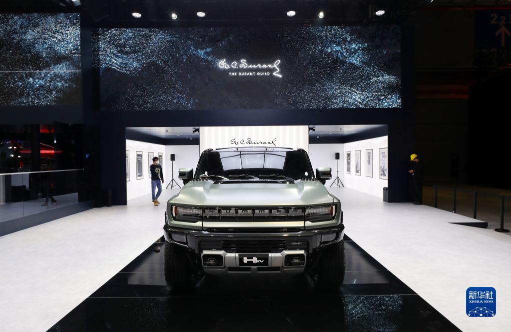 11月2日拍攝的通用汽車(chē)公司旗下道朗格品牌在進(jìn)博會(huì )上展出的純電悍馬SUV車(chē)型。