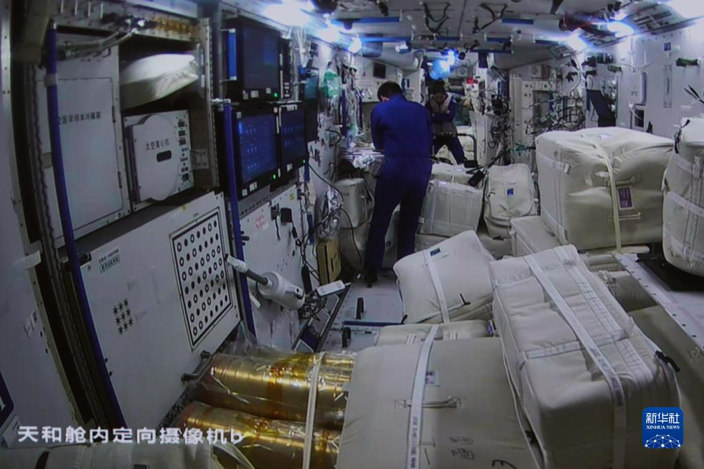 11月3日在北京航天飛行控制中心拍攝的夢(mèng)天實(shí)驗艙完成轉位后天和核心艙內的情況。