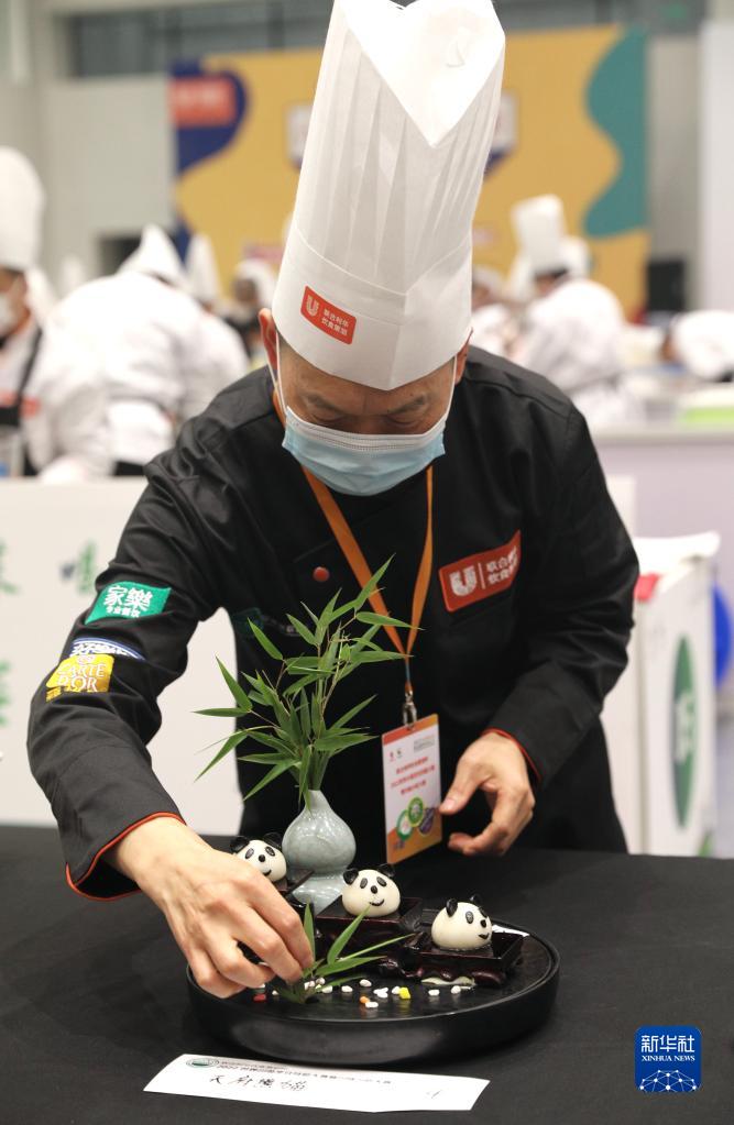 11月3日,廚師在世界川菜烹飪技能大賽暨川味小吃大賽上展示作品。