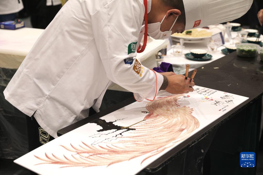 11月3日,廚師在世界中華火鍋宴大賽上準備食材。