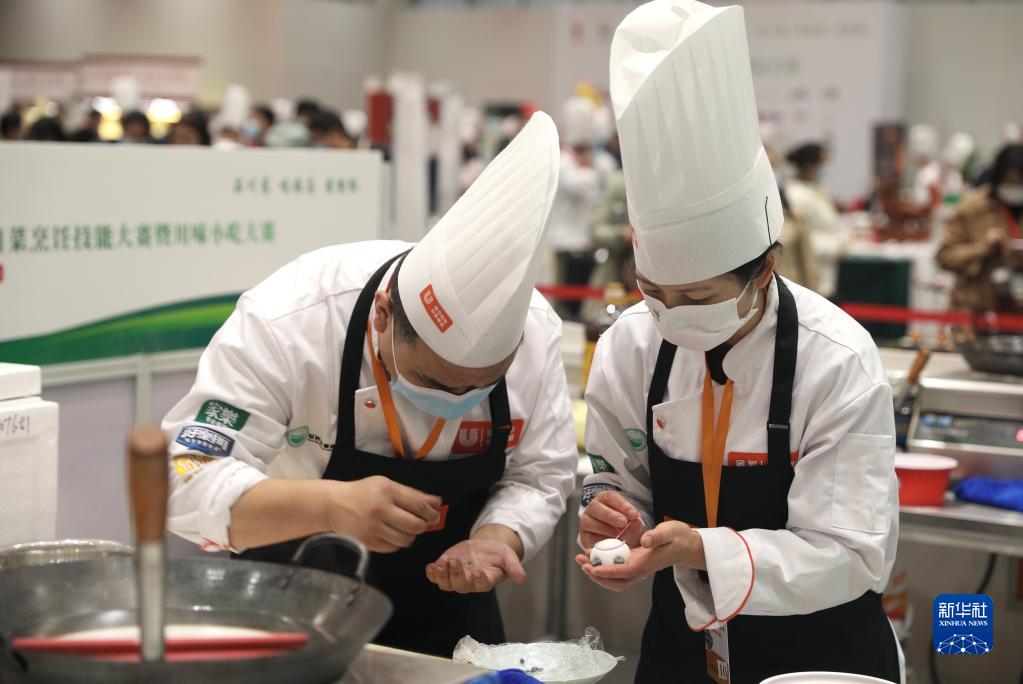 11月3日,廚師在世界川菜烹飪技能大賽暨川味小吃大賽上制作特色小吃。