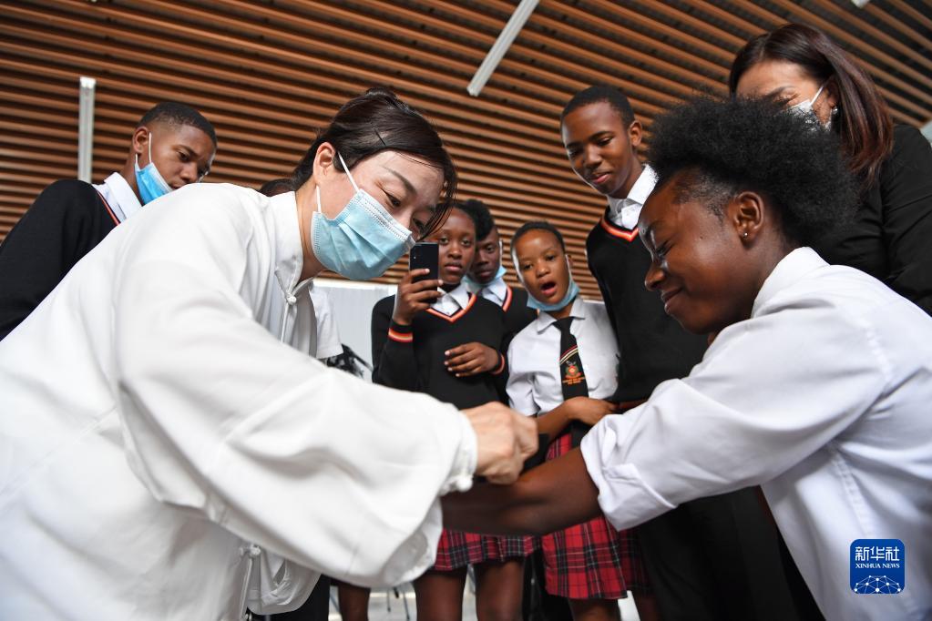 在納米比亞首都溫得和克的毛澤東主席中學(xué)3日的中文課上,第十四批中國援納醫療隊用銀針、火罐作教具,以推拿、做操為內容,讓同學(xué)們在輕松愉悅的學(xué)習中體驗中國傳統醫學(xué)文化。