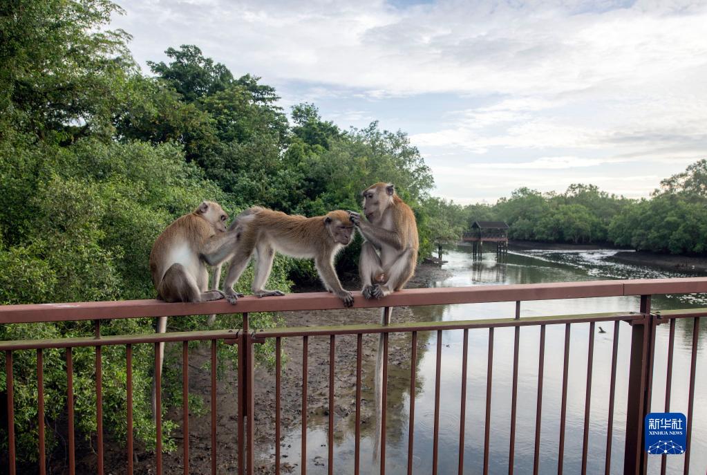 10月27日在新加坡雙溪布洛濕地保護區拍攝的長(cháng)尾獼猴。