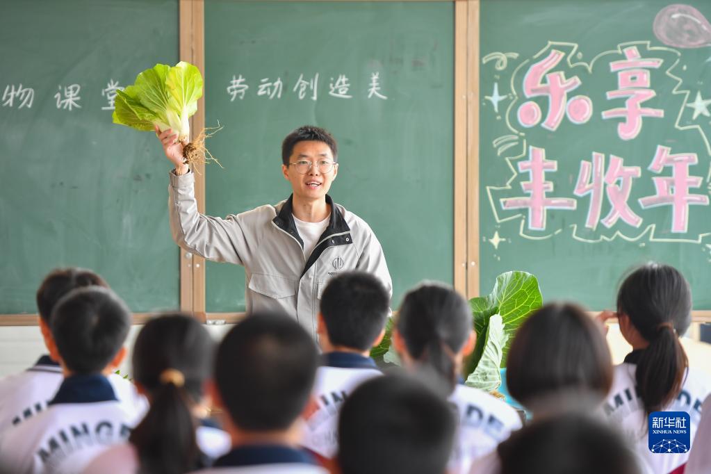 11月4日,在長(cháng)沙市天心區明德啟南中學(xué),生物老師在給學(xué)生們上課時(shí)講解蔬菜的知識。