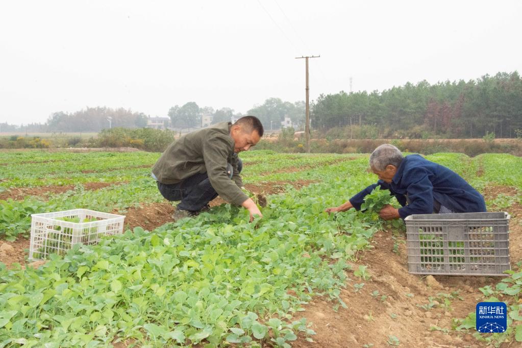 11月4日,在湖南省湘潭市湘潭縣中路鋪鎮柳橋村,村民在準備移栽油菜苗。