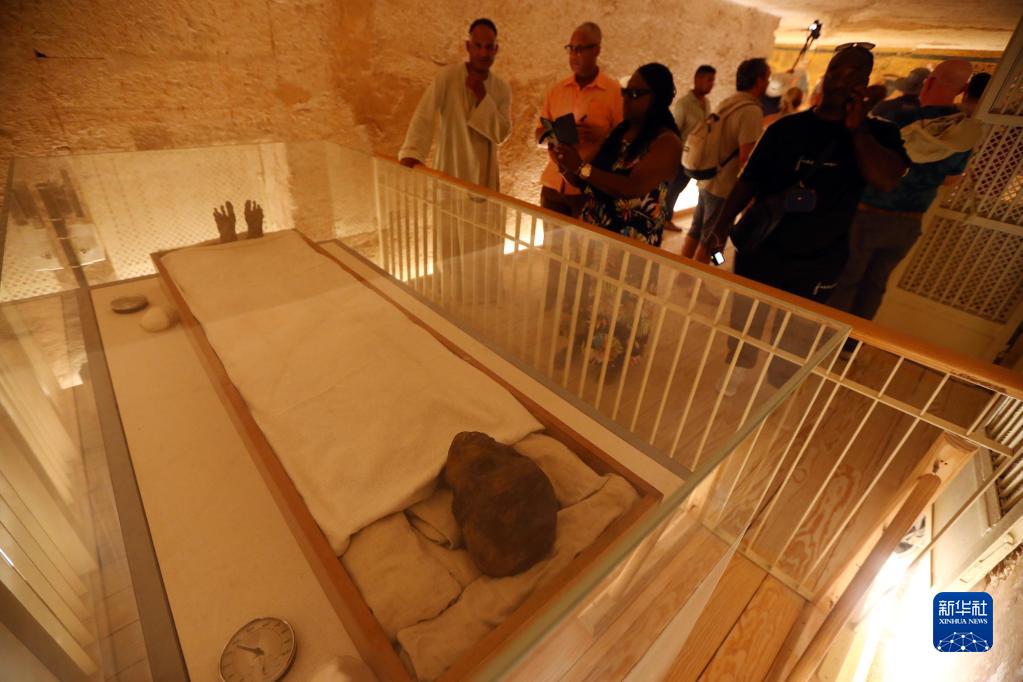11月4日,在位于埃及盧克索帝王谷的圖坦卡蒙墓內,游客參觀(guān)圖坦卡蒙的木乃伊。