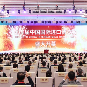11月4日晚,第五屆中國國際進(jìn)口博覽會(huì )開(kāi)幕式在國家會(huì )展中心(上海)舉行。新華社記者 方喆 攝