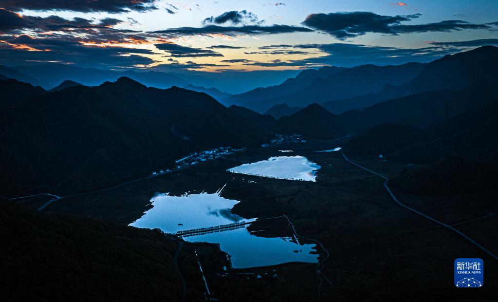 10月16日,清晨的神農架大九湖國家濕地公園(無(wú)人機照片)。