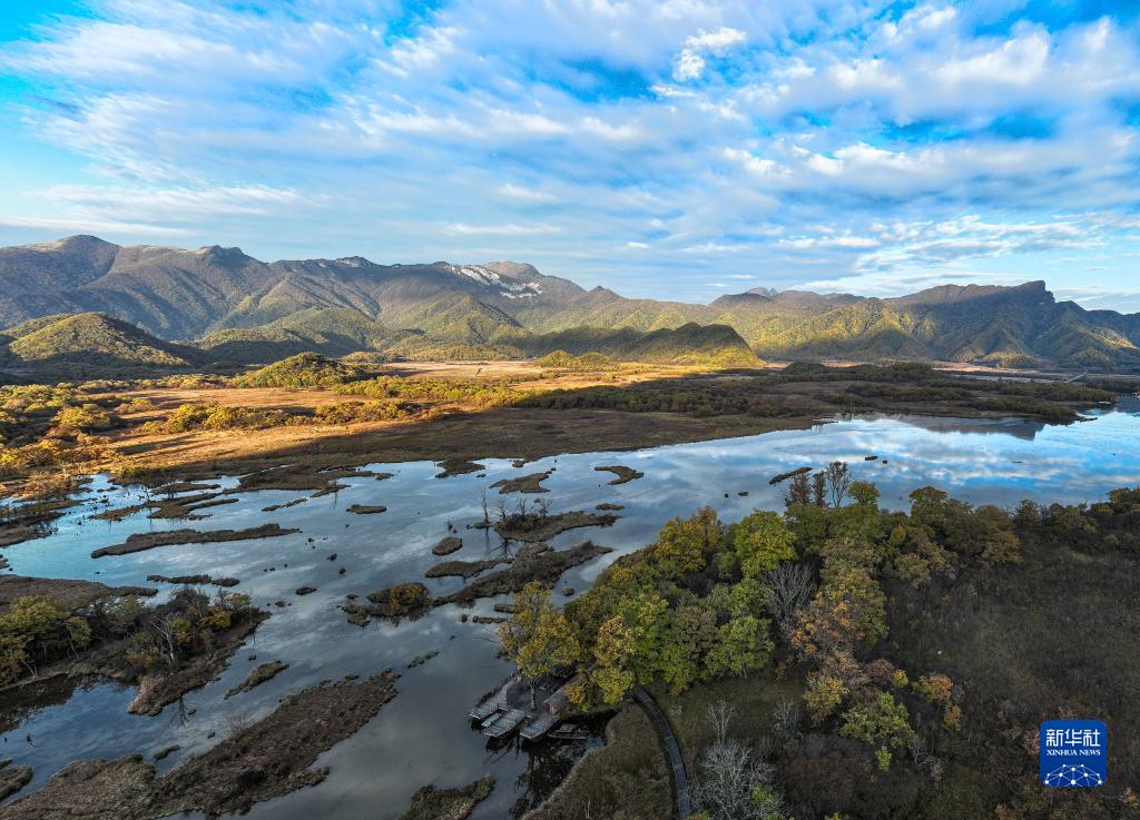 10月16日拍攝的神農架大九湖國家濕地公園一景(無(wú)人機照片)。