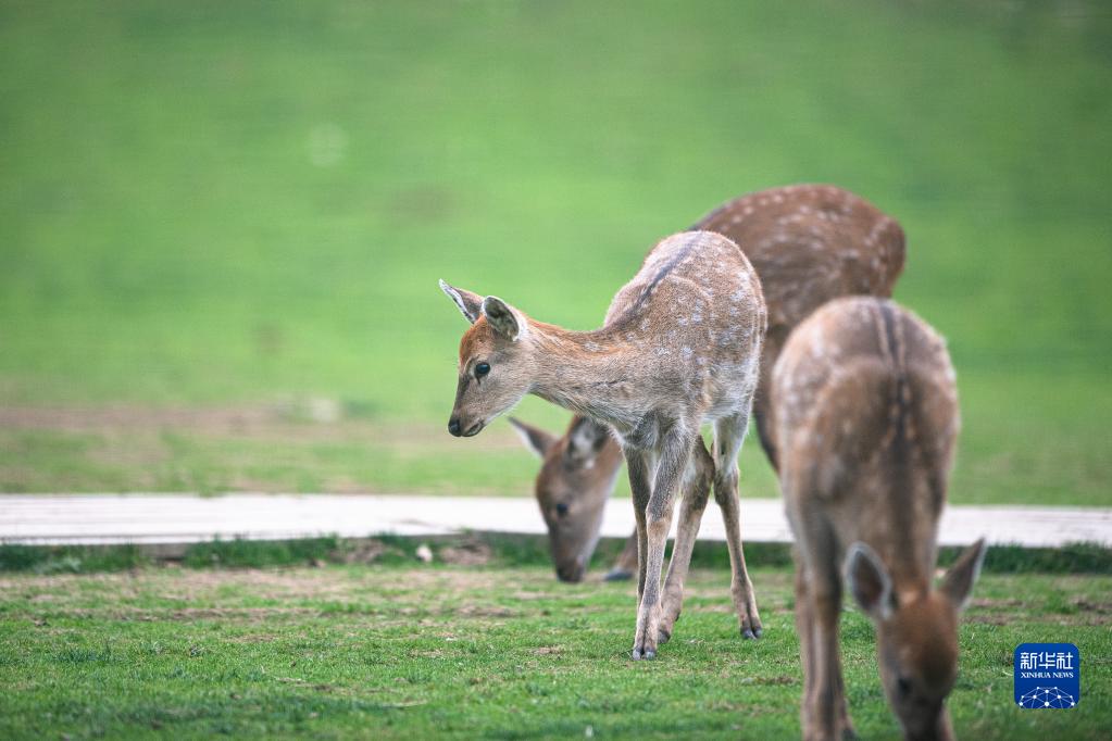 10月15日,梅花鹿在神農架大九湖國家濕地公園內活動(dòng)。