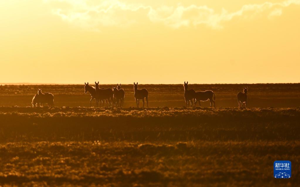 藏野驢在新疆阿爾金山國家級自然保護區內的依協(xié)克帕提濕地覓食(2022年8月3日攝)。