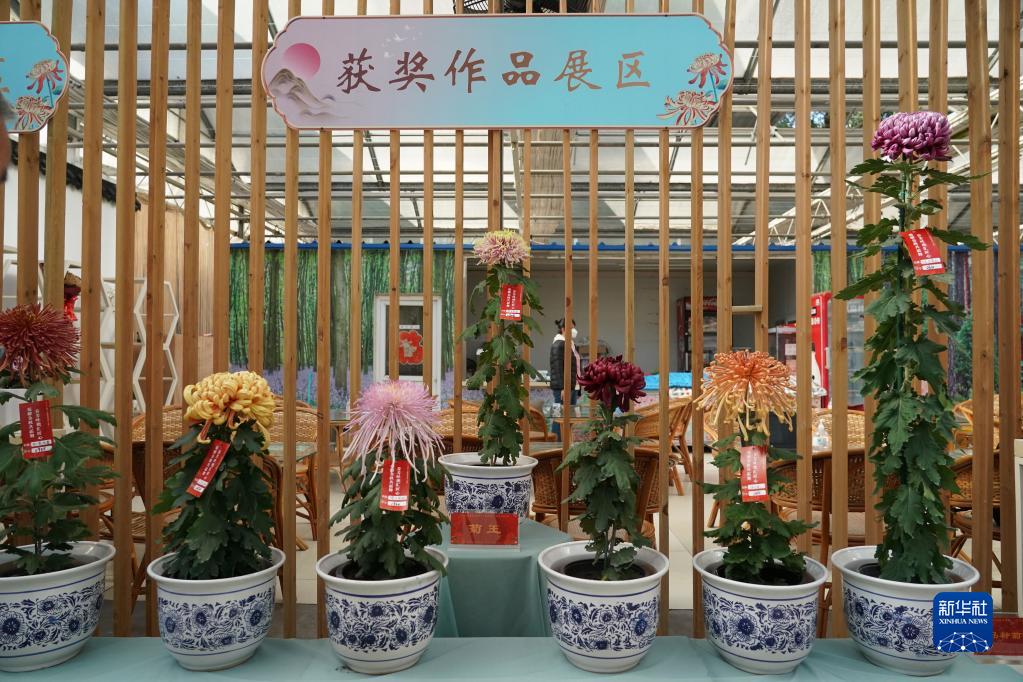 11月5日在北京世界花卉大觀(guān)園拍攝的“2022北京菊花文化節——北京第十三屆菊花擂臺賽”中獲獎的菊花。 新華社記者 任超 攝