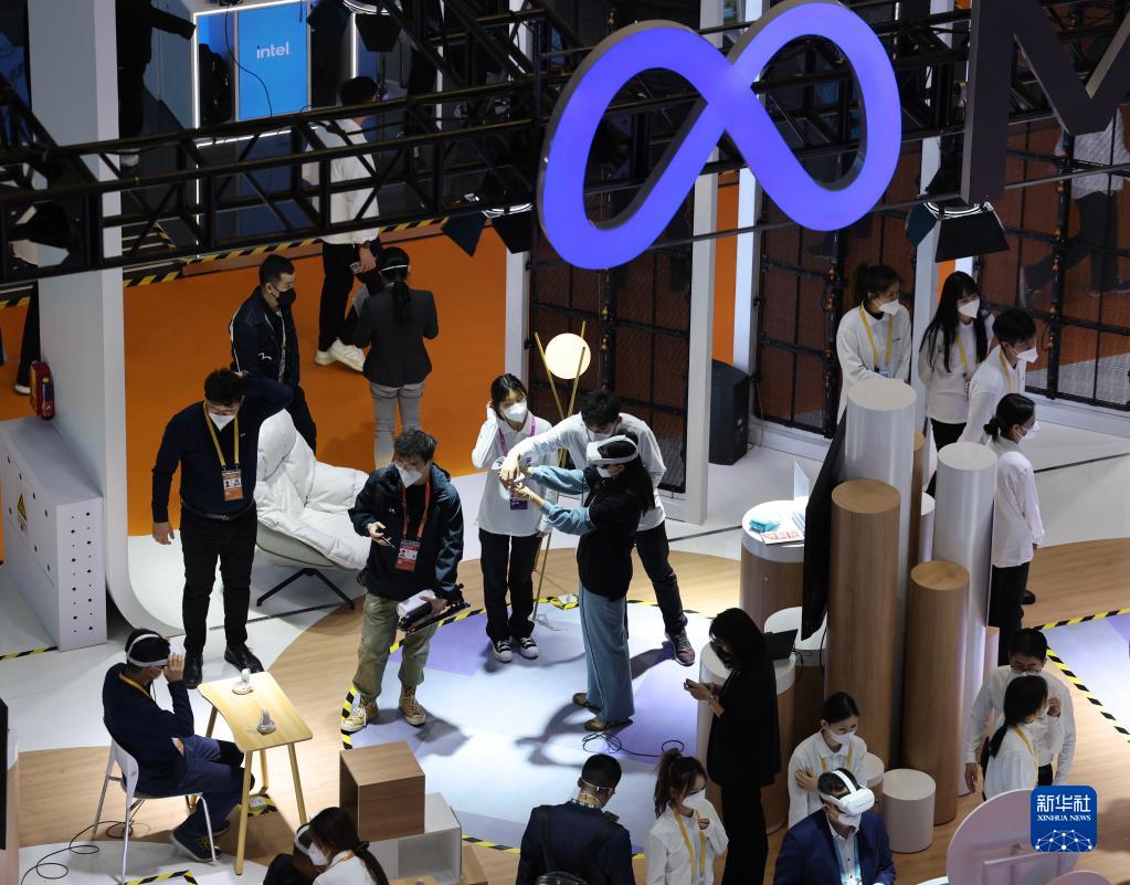 11月5日,參觀(guān)者在第五屆進(jìn)博會(huì )技術(shù)裝備展區人工智能專(zhuān)區體驗“元宇宙”社區。