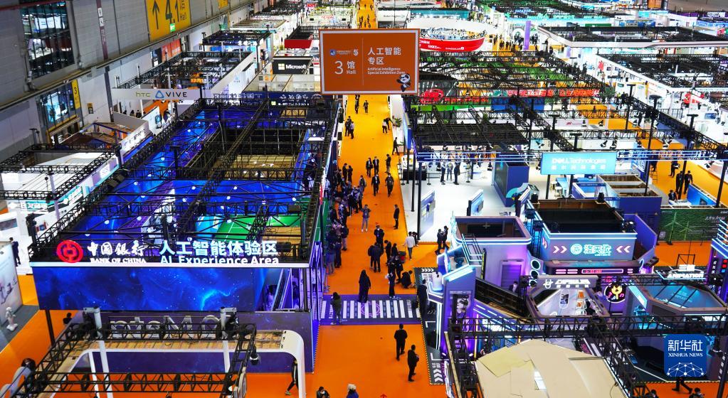 11月5日拍攝的第五屆進(jìn)博會(huì )技術(shù)裝備展區內的人工智能專(zhuān)區。