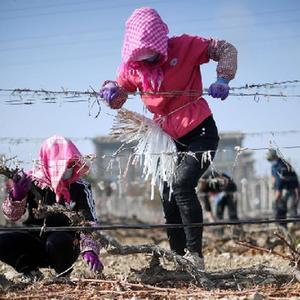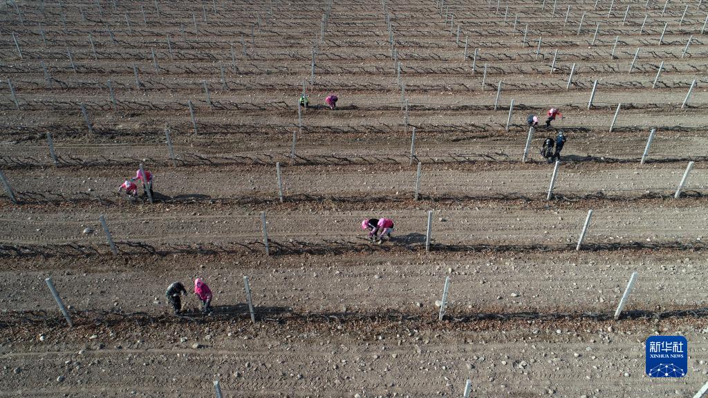 近日,隨著(zhù)氣溫降低,寧夏賀蘭山東麓優(yōu)質(zhì)釀酒葡萄產(chǎn)區數十萬(wàn)畝釀酒葡萄迎來(lái)“冬眠季”。當地群眾在田間地頭下架、綁藤、埋藤,幫助葡萄藤進(jìn)入“冬眠”狀態(tài)。冬藏埋土、春季展藤,以避免低溫凍傷葡萄藤。