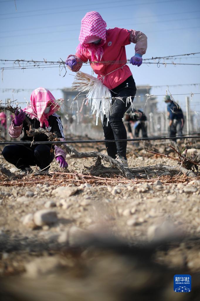 近日,隨著(zhù)氣溫降低,寧夏賀蘭山東麓優(yōu)質(zhì)釀酒葡萄產(chǎn)區數十萬(wàn)畝釀酒葡萄迎來(lái)“冬眠季”。當地群眾在田間地頭下架、綁藤、埋藤,幫助葡萄藤進(jìn)入“冬眠”狀態(tài)。冬藏埋土、春季展藤,以避免低溫凍傷葡萄藤。