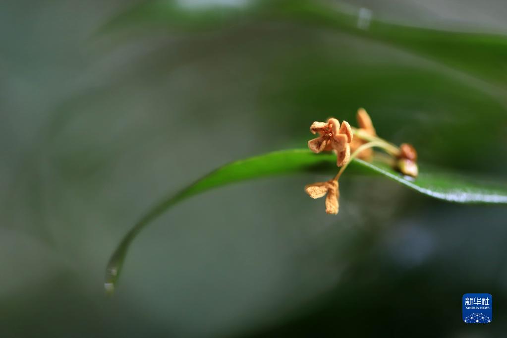 11月2日,在貴州省凱里市,花瓣落在樹(shù)葉上。