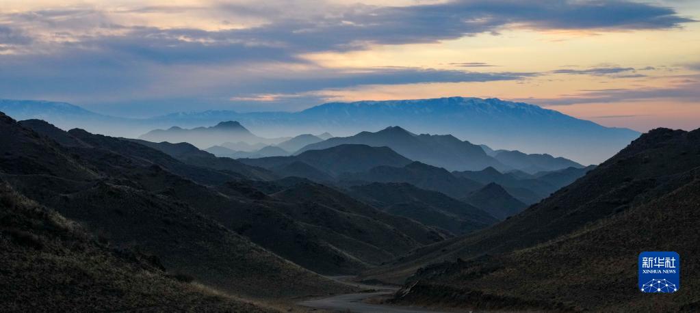 夕陽(yáng)下的新疆裕民縣巴爾魯克山冬季牧場(chǎng)(11月4日攝)。