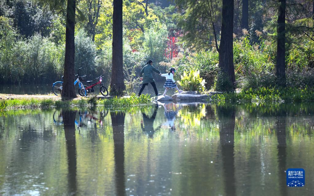 市民在武漢華僑城生態(tài)濕地公園休閑(11月3日攝)。 新華社記者 程敏 攝