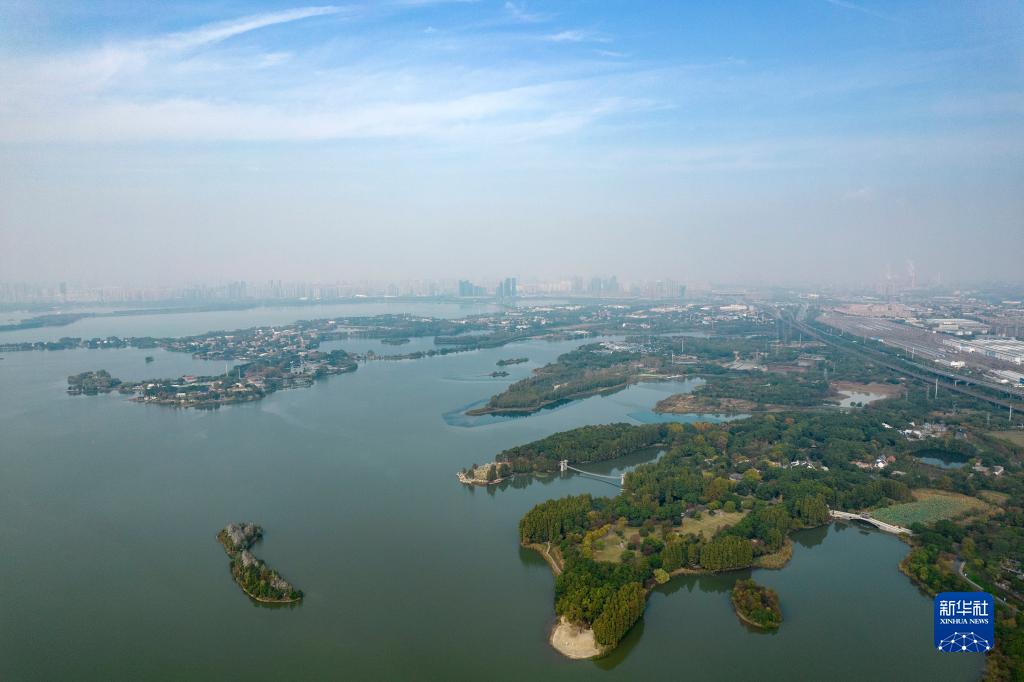 武漢東湖(11月5日攝,無(wú)人機照片)。 新華社記者 孫瑞博 攝