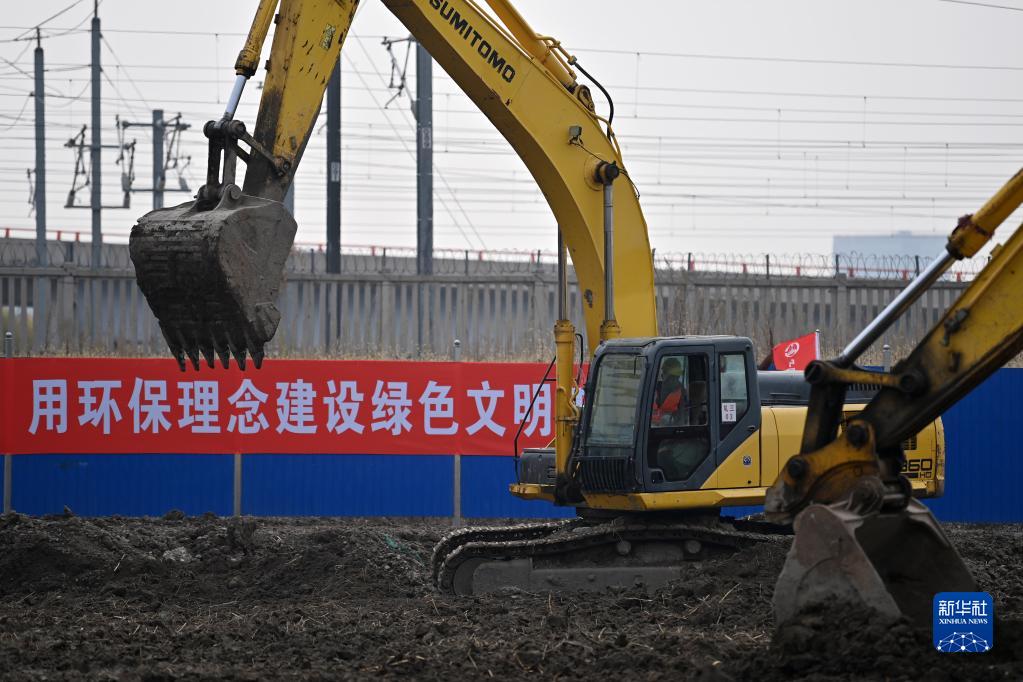 11月6日,在天津市濱海新區濱海西站,工程車(chē)輛在施工作業(yè)。