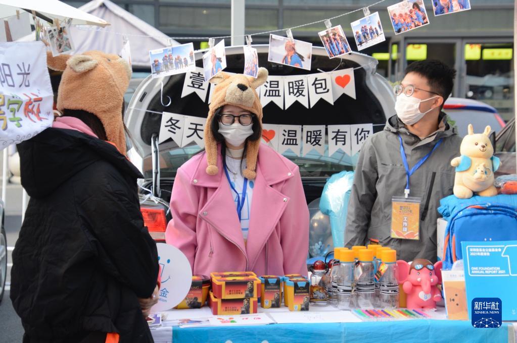 11月6日,志愿者在公益市集上展示和推廣公益項目。