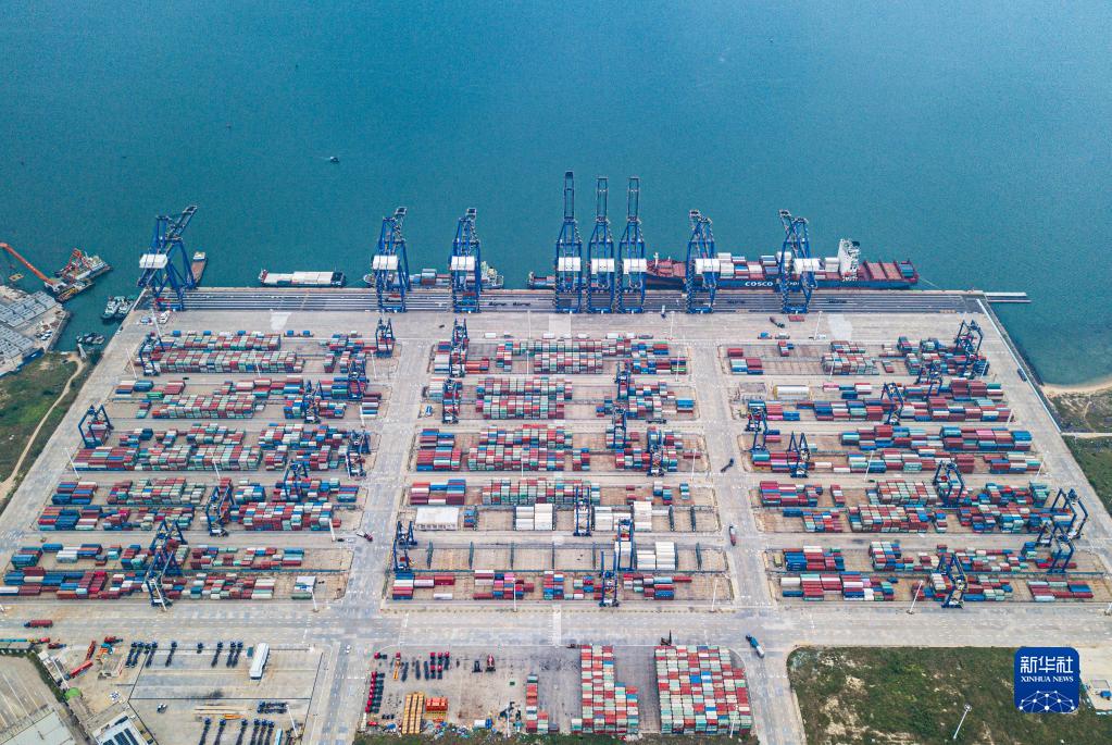 這是海南洋浦國際集裝箱碼頭(無(wú)人機照片,11月5日攝)。