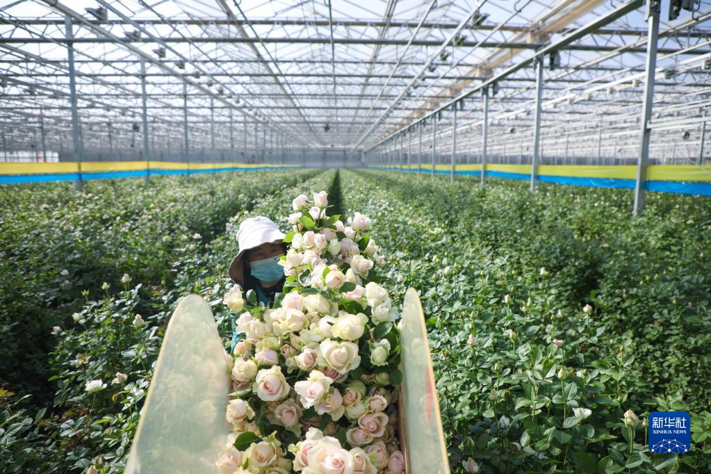 近日,甘肅省蘭州新區花卉產(chǎn)業(yè)基地智能溫室內的鮮切玫瑰競相爭艷,每天近十萬(wàn)枝鮮切花從這里發(fā)出。近年來(lái),蘭州新區引進(jìn)先進(jìn)種植設施設備、種植群體,改良花卉品種選培,玫瑰、蝴蝶蘭等高端花卉實(shí)現了全季節、全天候生產(chǎn),年產(chǎn)鮮切花可達1億枝,不僅暢銷(xiāo)國內市場(chǎng),還遠銷(xiāo)俄羅斯、哈薩克斯坦等“一帶一路”沿線(xiàn)國家。