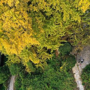 11月6日,游客在貴州省貴陽(yáng)市烏當區羊昌鎮黃連村的古銀杏樹(shù)下游覽(無(wú)人機照片)。