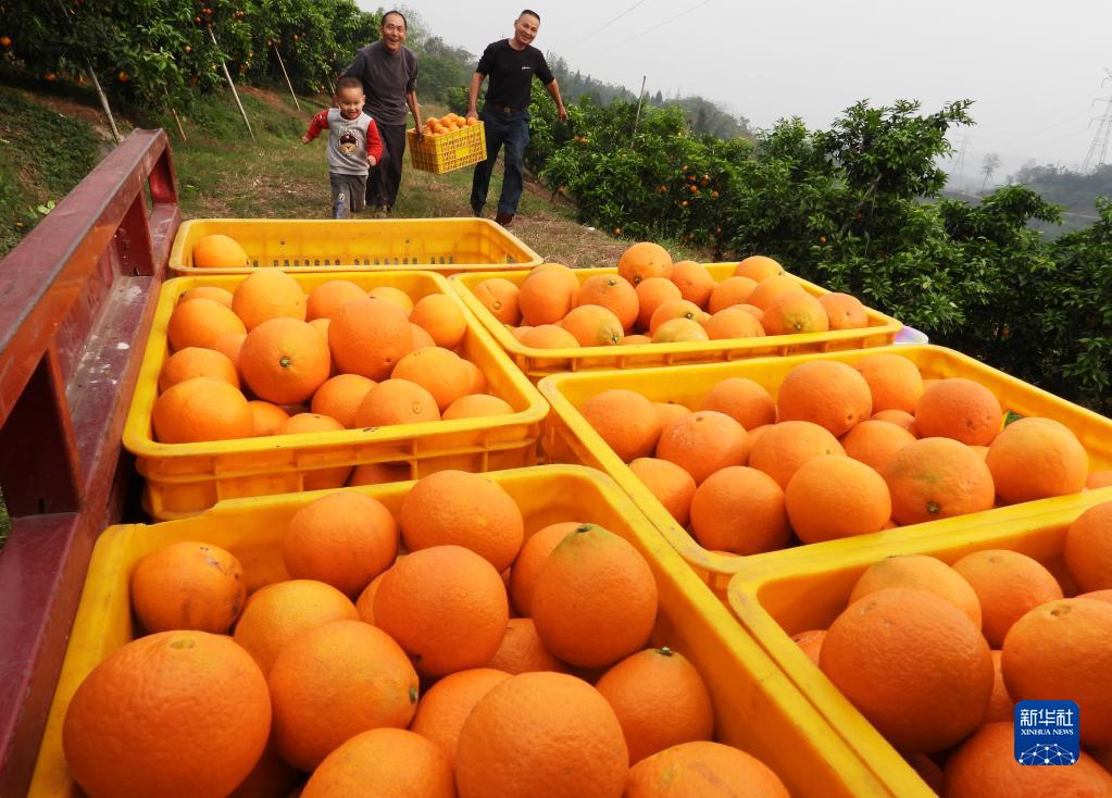 11月7日,四川省達州市高新區金埡鎮金山村,果農在搬運剛采摘的有機臍橙。