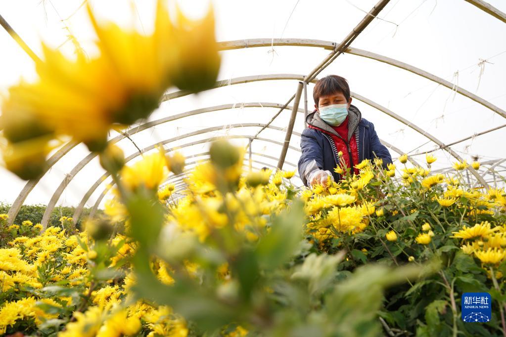 11月7日,河北省邢臺市內丘縣吳村農民在采摘金絲皇菊。