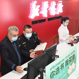 11月7日,在湖州市吳興區愛(ài)山街道一家書(shū)店,綜合執法隊工作人員對其進(jìn)貨清單進(jìn)行查驗。