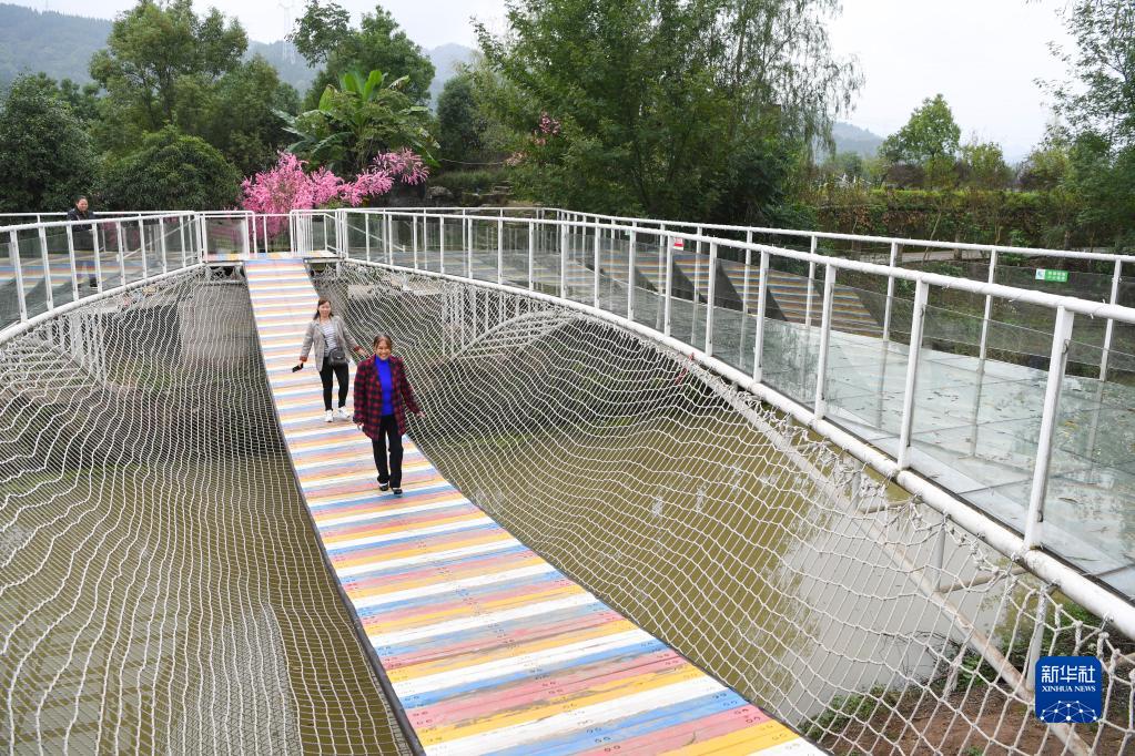 10月31日,在重慶市開(kāi)州區,游客在王智勇領(lǐng)頭創(chuàng )辦的田園農旅綜合體景區游玩。