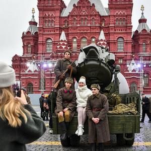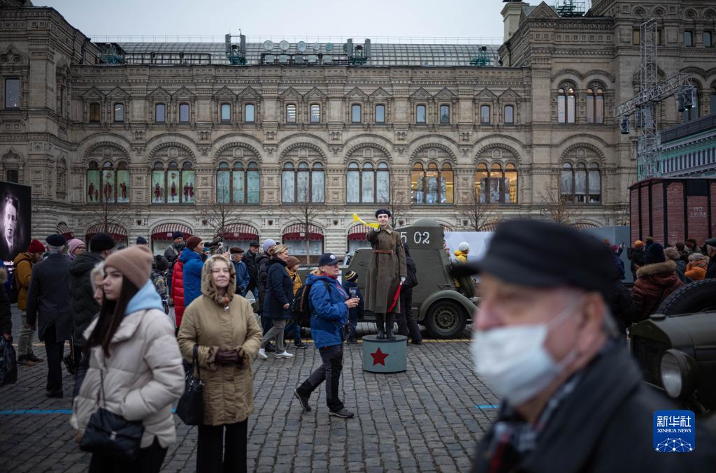 11月7日,在俄羅斯首都莫斯科,人們在紅場(chǎng)參觀(guān)以紀念1941年蘇聯(lián)紅場(chǎng)閱兵式為主題的露天展覽。