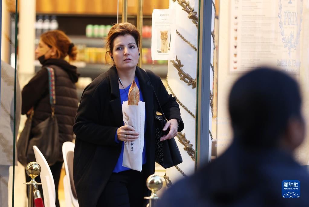 11月7日,一名女子拿著(zhù)剛剛買(mǎi)到的法棍面包走出法國巴黎一家面包店。
