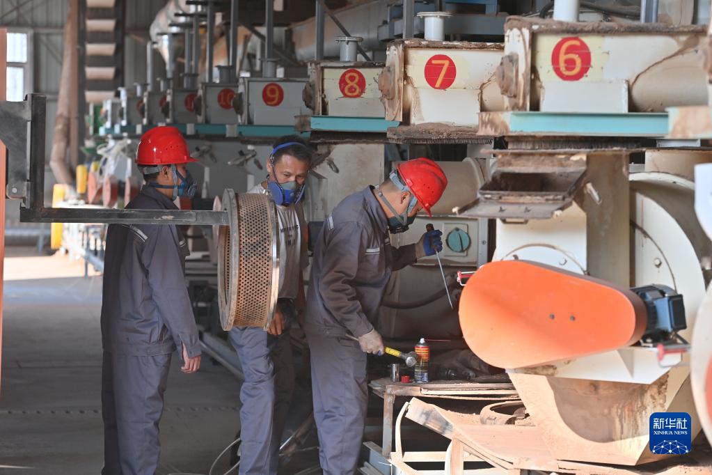 在廣西融水苗族自治縣粵桂協(xié)作產(chǎn)業(yè)園一家新能源生產(chǎn)企業(yè),工人在檢修設備(11月8日攝)。