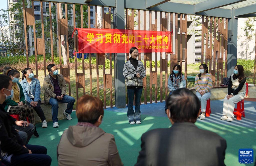 11月2日,袁媛在合肥市包河區常青街道油坊崗社區向群眾宣講黨的二十大精神。