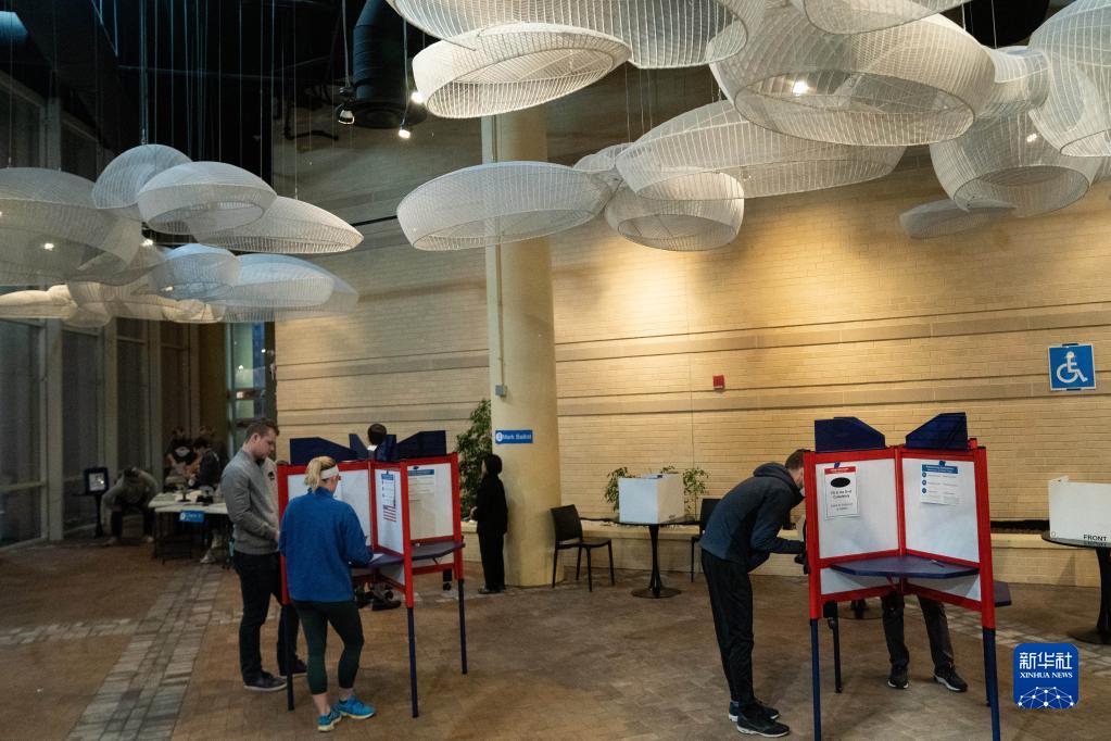 11月8日,選民在美國弗吉尼亞州阿靈頓的一處投票點(diǎn)參加中期選舉投票。