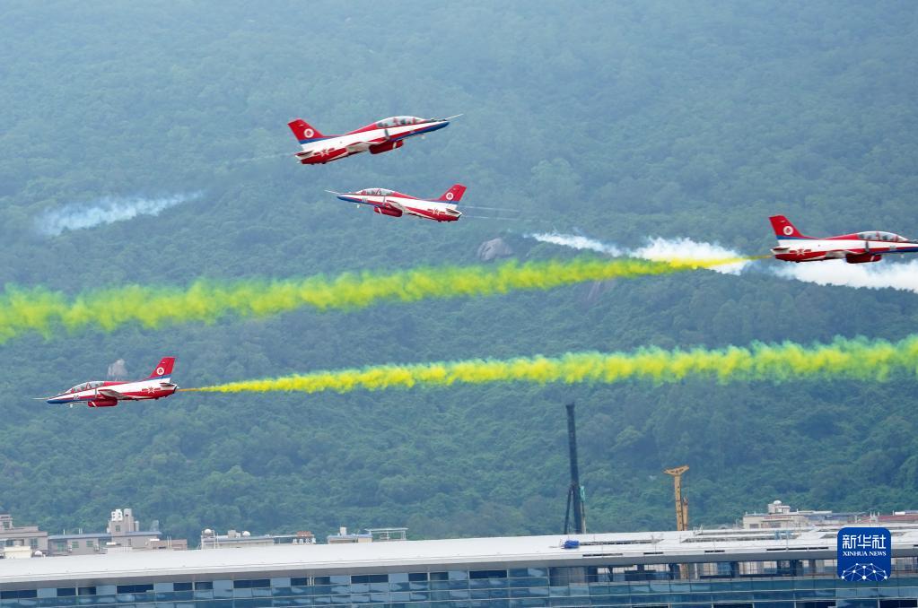 上午10時(shí),首先進(jìn)行飛行表演的是空軍八一飛行表演隊,6架殲-10呈現了大仰角躍升、六機編隊斤斗、六機同步橫滾等動(dòng)作,不僅精彩震撼,同時(shí)也具備很高的實(shí)戰價(jià)值。作為空軍“學(xué)院派”飛行表演隊的空軍航空大學(xué)“紅鷹”飛行表演隊,以“飛出驚險、飛出極限、飛出震撼”而著(zhù)稱(chēng)。針對珠海的天氣與地域特點(diǎn),他們今年增加了八機通場(chǎng)、八機盤(pán)旋等動(dòng)作,表演更緊湊、更有看點(diǎn)。
