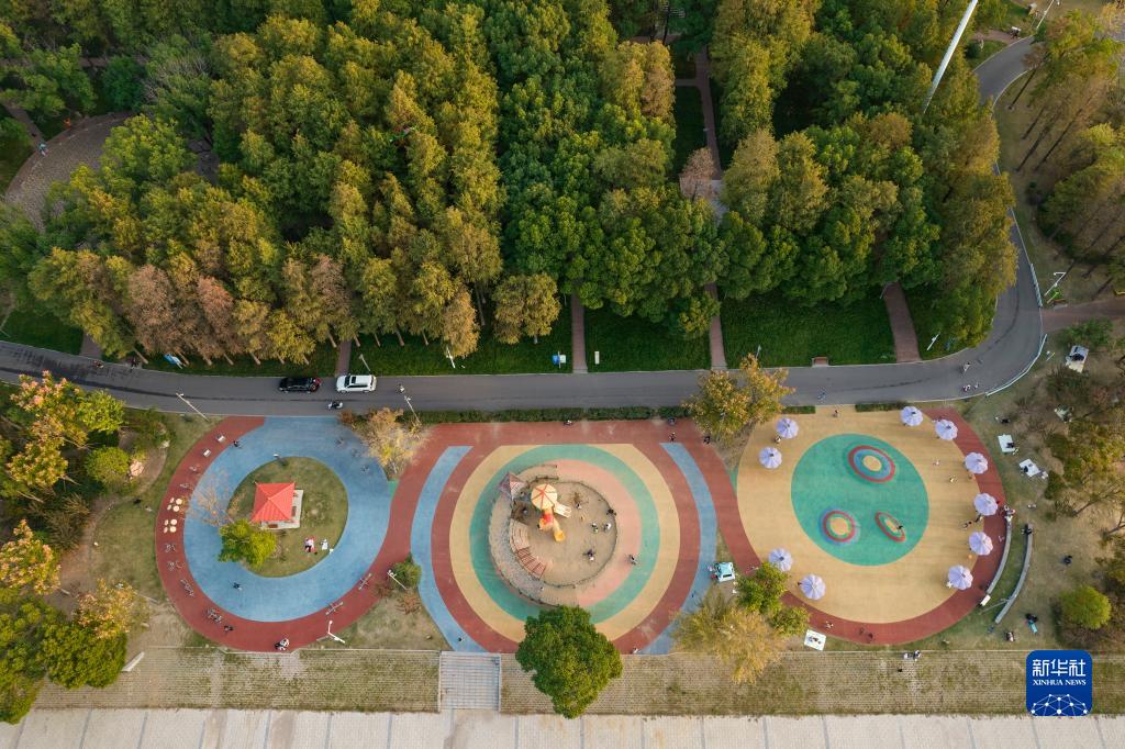 這是11月8日在武漢市青山江灘拍攝的市民休閑區域(無(wú)人機照片)。